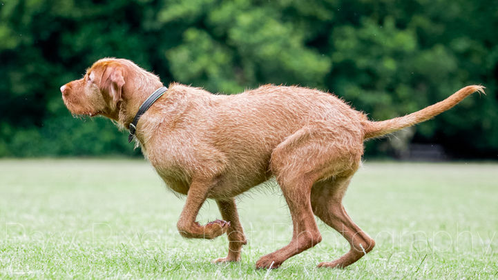 This gentle giant is a Wirehaired Hungarian Vizsla who did not mind being photographed in the rain as long as we kept playing with the ball. Across the fields and through the beautiful wooded areas of the park we caught some incredible shots of Fin.